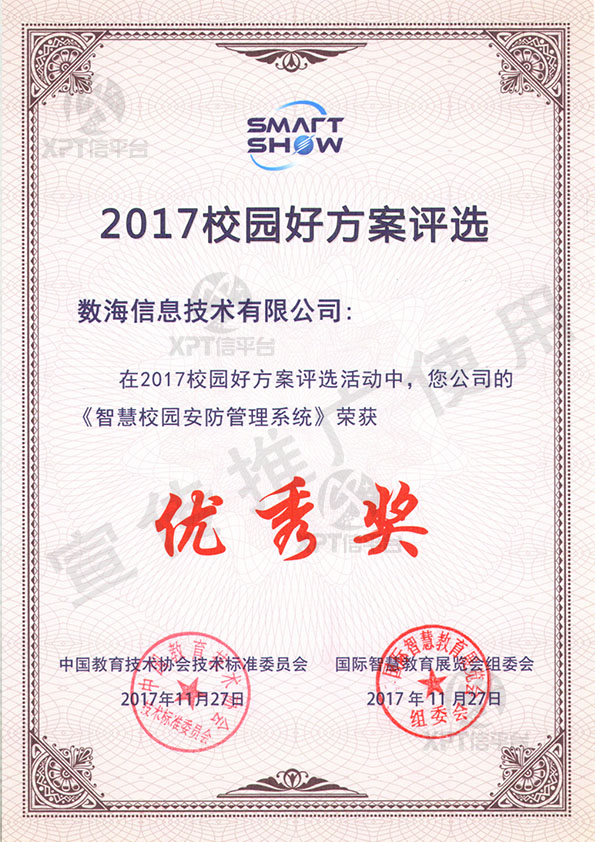 榮膺“2017優(yōu)秀校園好方案”殊榮。標(biāo)志著基于國(guó)際領(lǐng)先的物聯(lián)網(wǎng)和大數(shù)據(jù)技術(shù)綜合應(yīng)用的數(shù)海智慧校園安防管理系統(tǒng),在